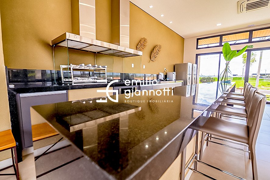 espaço gourmet, piscina infantil, piscina (com deck), churrasqueiras, academia completa, quadra poliesportiva, quadra de futebol society, quadra de areia e playground.