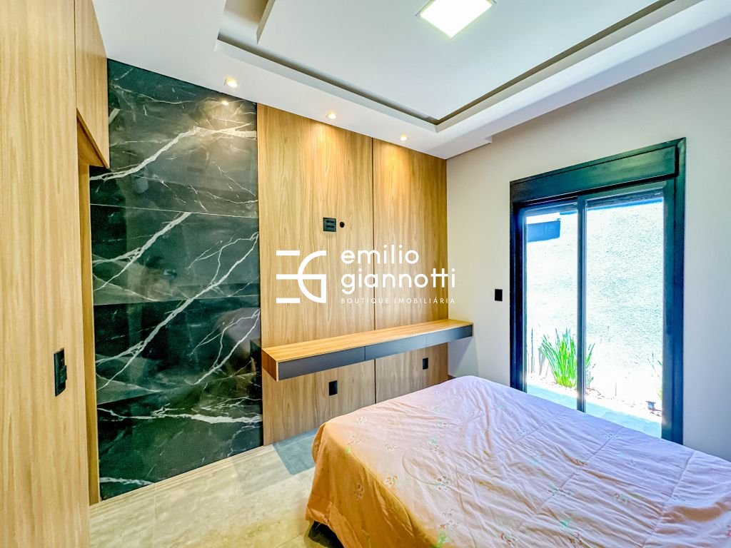 A casa é revestida com porcelanato de alta qualidade, conferindo elegância e durabilidade.